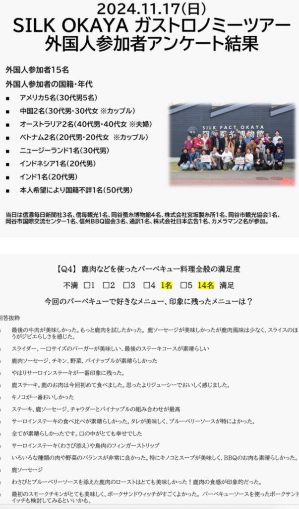 信濃毎日新聞社さんがインバウンド向けモデルツアーとして【シルク岡谷ガストロノミーツアー】を観光庁支援事業として開催しました。