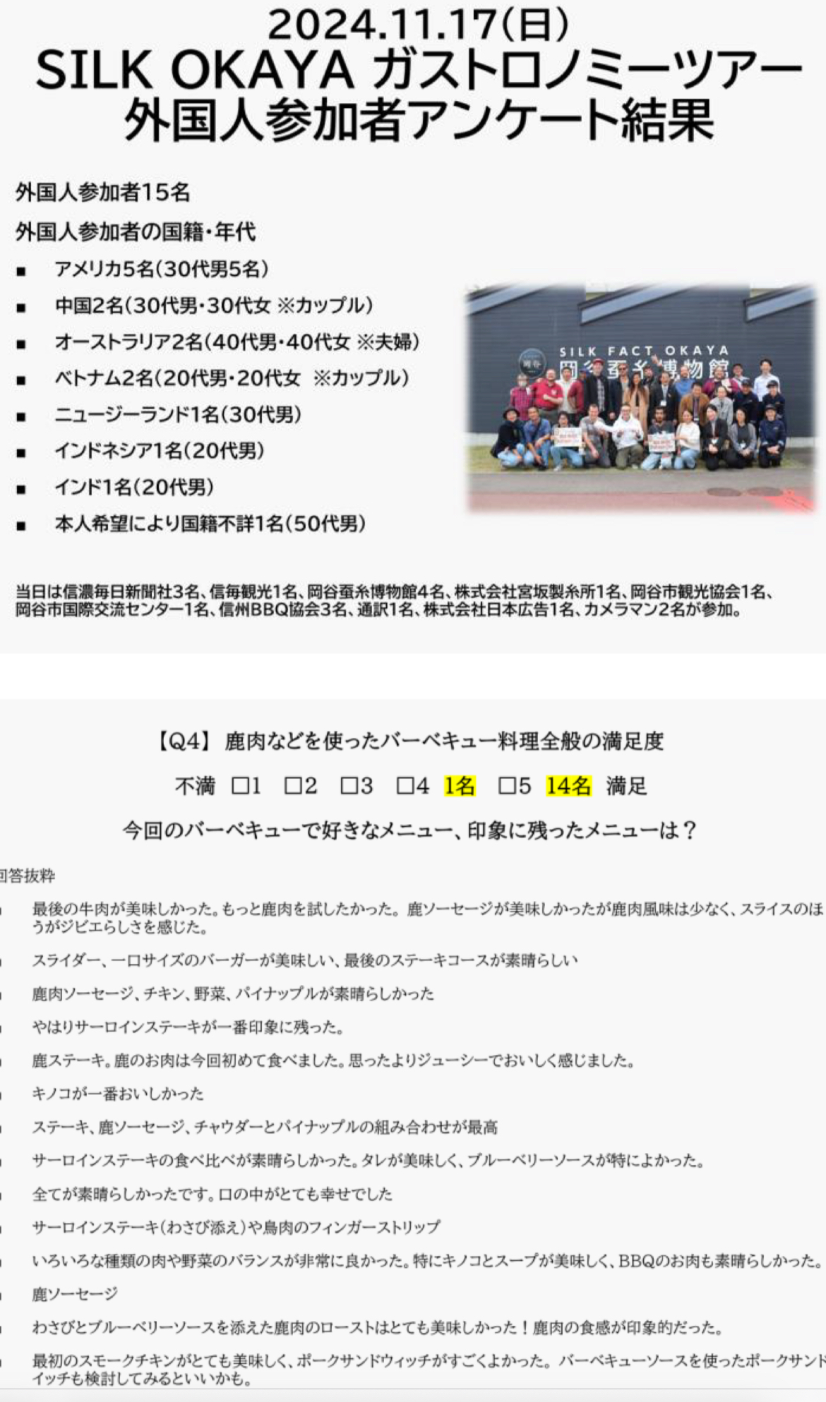 外国人参加者対象のアンケート結果