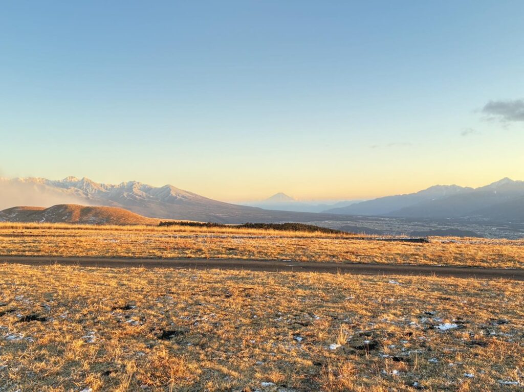 2025年もスタートは雪の霧ヶ峰でした。遠くには富士山も見えます。
