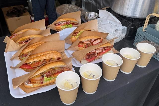 今回は珍しく朝食と昼食です。寒い(と言っても6月なので以前の2月ほどでは…w)現場で少しでも体が温まるよう、出来立てをご用意しました。