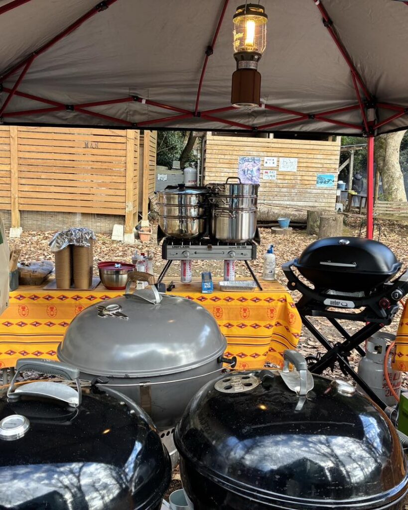 普段は炭火やガス火を使っているので、基本、屋外にセットアップ(展開)します。