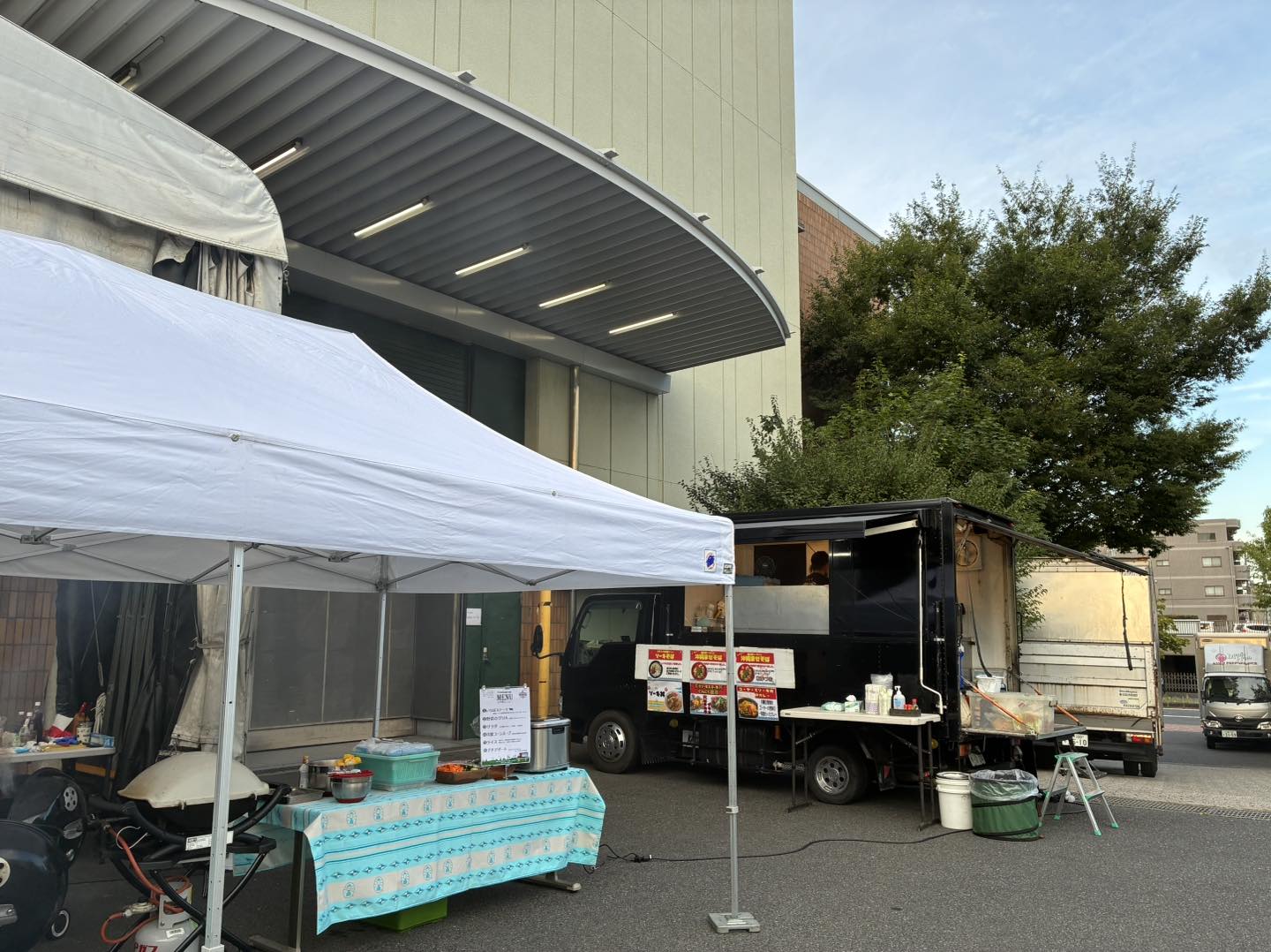 人数が多いとのことでこの日は沖縄そばのキッチンカーとご一緒です。こちらがだいぶ場所を取ってすみません…