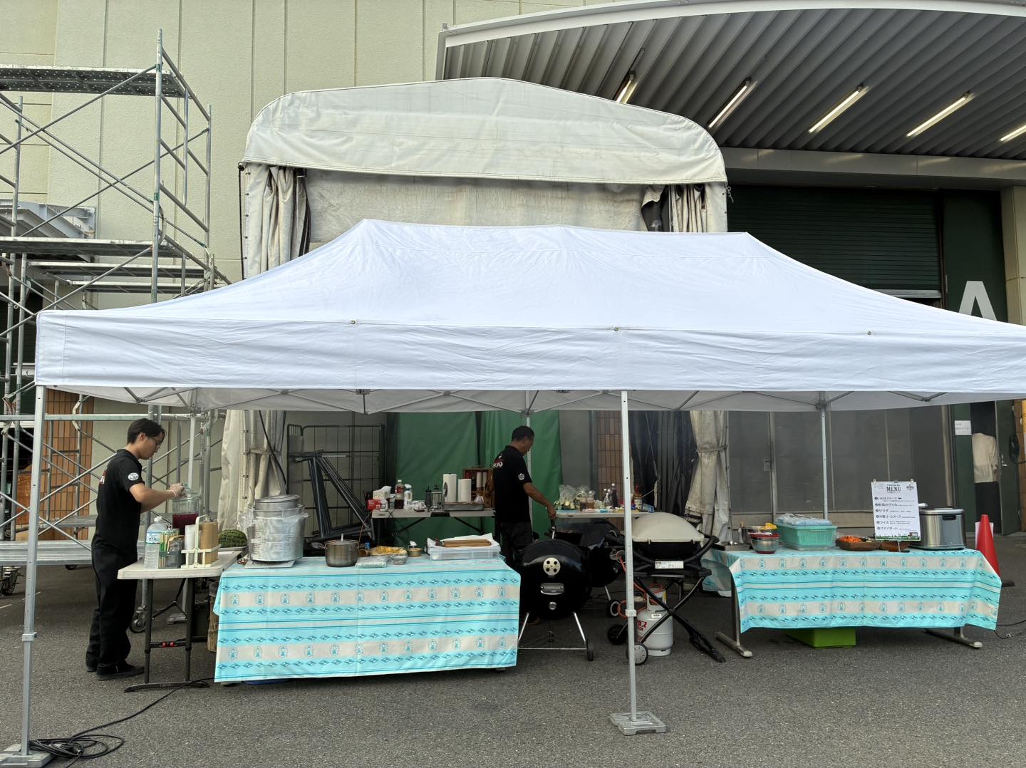 キッチンカーこそあるものの、充実した厨房施設や、充分な電気やガスがない現場で100人分を越える料理を安全安心に提供するのですから、言われてみれば「ごもっとも」と今さらながらに本人も納得ですw